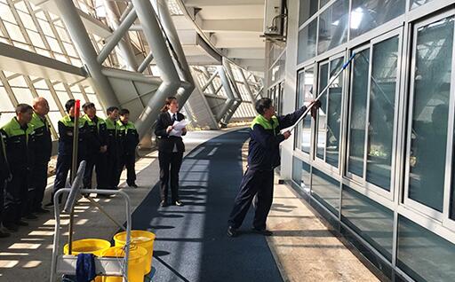 為了進一步提高保潔人員的業務水平和實際操作能力,營造“比學趕超”的學習氛圍。2019年3月14日下午,奧體中心保潔主管郁志賢召集全體保潔們在 |