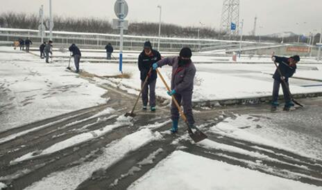 近日,常州連夜大雪對旅客出行造成了影響,高鐵北站上下高度重視,項目部副經理劉源率領安保部立即啟動除雪防滑應急預案,全面開啟“防凍模式”迎戰冰 |