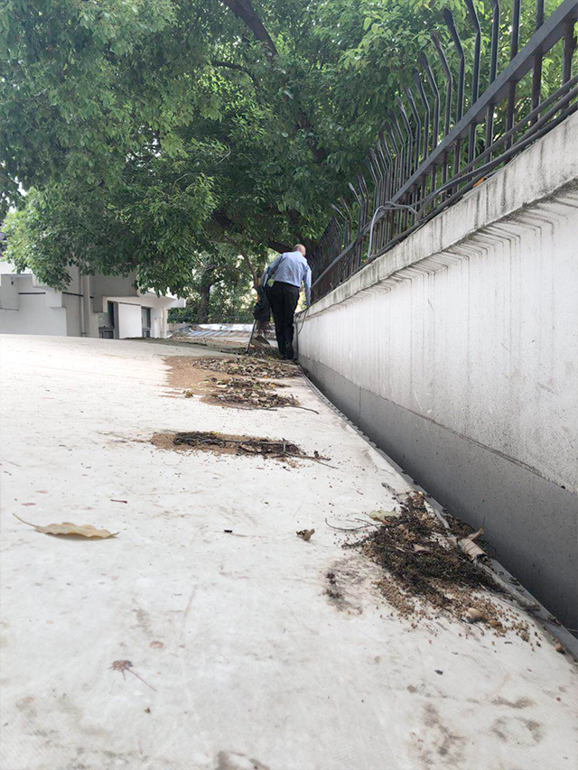 員工們通力合作、安全有效的將雨棚清理干凈,確保了雨棚的排水溝保持通暢。