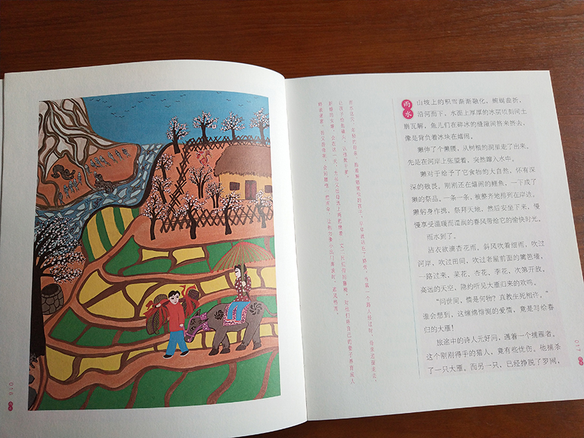 就是這樣,帶著一種愉悅、好奇、求知的心情,走進《光陰——中國人的節氣》的世界。我總是先看農民畫,再讀文字,兩者相映成趣,相得益彰。這本書文字清新淡雅,詩詞歌賦、鄉風民俗,在作者詩情畫意的描述中娓娓道來。作者旁征博引,由淺入深,通俗易懂,妙趣橫生,富于哲理,令人不時掩卷沉思。
