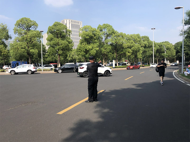 外圍車輛較多,故安排保安在三岔路口進行交通秩序維護,指揮來往的車輛停至指定停車場,或者有序的停放在外圍道路兩邊,同時安排了保潔對外圍的地面環(huán)境進行了清掃,中午時間段安排了5名保潔將展館內的垃圾桶全部拖出來,三名保潔一起將滿是盒飯和塑料瓶的垃圾桶一起抬上垃圾車進行清倒,確保了垃圾桶不會因為天熱而散發(fā)出難聞的異味,通過保安和保潔們的不懈努力,確保了此次展覽會的圓滿舉行,得到了甲方的認可與表揚。