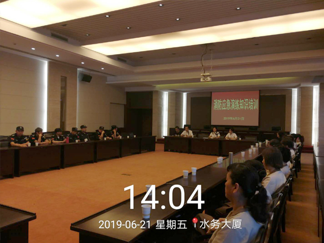 2019年6月21日,水務(wù)大廈邀請高安消防維保教育中心的教官對水務(wù)大廈全體員工進(jìn)行消防知識普及講座,著重從安全基礎(chǔ)知識、防火專題、滅火專題、逃生專題四個專題進(jìn)行詳細(xì)講解。為了模擬現(xiàn)場更加逼真,培訓(xùn)結(jié)束后,全員各自回到崗位,恢復(fù)正常工作,演練準(zhǔn)備工作均在悄無聲息地布置與醞釀中,下午2.00模擬火情點然后消控室接到火情警報,當(dāng)班保安立即拉響警報,通過報警系統(tǒng)發(fā)出警報,要求在3分鐘內(nèi)迅速撤離現(xiàn)場到一樓北門口集合,保安員立即拿起滅火器、接水帶,打開消防水泵閥對初期火災(zāi)進(jìn)行撲救。所有人員安全撤離到集合地點。