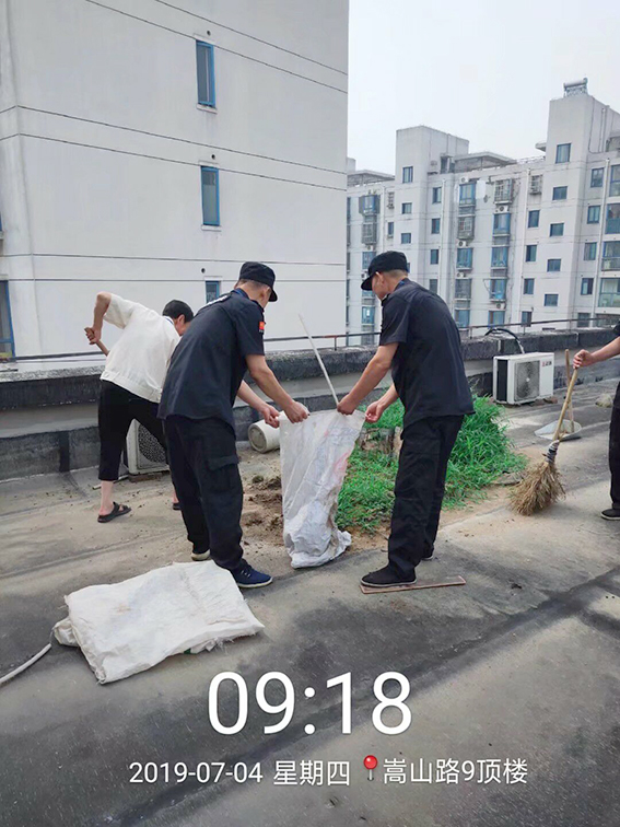2019年7月4日,物管員在巡查中發現,嵩山路9號的頂樓天臺有大量泥土。可能是一些業主自己拿上去種花的,現在不用了,忘記清理掉。物管員第一時間安排保潔隊長和幾名保安一起對頂樓天臺進行了徹底的清理。當天的天氣非常炎熱,但是大家克服一切困難,一心只為業主著想。因為天臺上雜物垃圾危害是很大的,一方面有味道,另一方面就是容易造成頂樓的業主家漏水。我們帶了很多麻袋,帶了鐵鍬和一些清掃的工具,花了兩個多小時,裝了十幾麻袋的泥土和雜物下去,工作量也是蠻大的。天氣雖然熱,但是我們的工作熱情一點沒也減少,圓滿的完成了清理頂樓天臺的工作,為迎接梅雨季節做好準備工作。