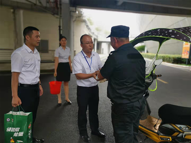 在發放慰問品的過程中,集團領導看到物業員工臉上的汗水,不時囑咐大家注意防暑,多補充水分。集團領導感謝所有員工的辛勤付出。大家紛紛表示,要堅守自己的崗位,不辜負集團領導的關懷和期望,保障各項工作有序開展。