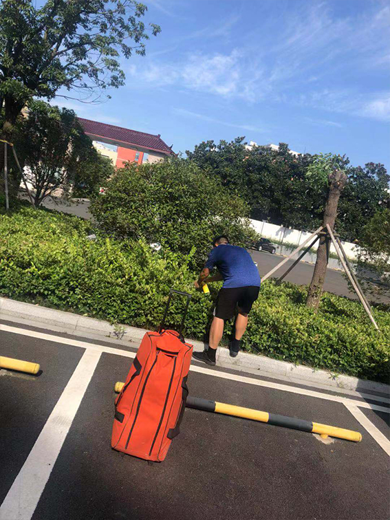 下午“藍朋友”帶著專業裝備對付蜂窩,同樣的步驟——噴。不過是比較霸氣的,帶火噴射。噴射同時,我們準備好水,以備綠植起火,及時澆滅。