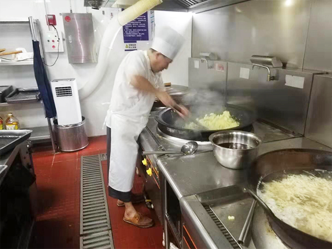 想想我們那些在廚房干活的師傅們,真是不容易。你可能還在舒適的空調(diào)房的睡夢(mèng)中,我們的師傅已經(jīng)在高溫的廚房開始為一天的飯菜做準(zhǔn)備了。在制作早餐的小菜,點(diǎn)心,面條和粥的過程中熱量又急劇升溫,師傅們的衣服都濕透了,氣溫還沒到達(dá)最高點(diǎn)。他們就在這樣像桑拿一樣的廚房工作著。到了中午廚房的溫度在師傅們的炒做過程中達(dá)到了40幾度,但我們的師傅們還在那邊有條理地干著活,洗碗的地方與廚房的溫度不相上下,洗碗阿姨臉上的汗珠直往外冒但手中活還在不停地做著。