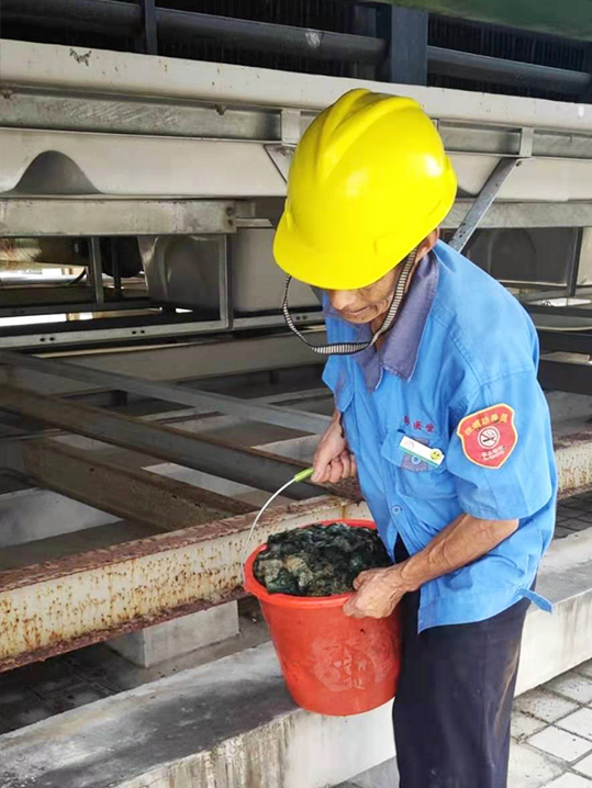 “好醫(yī)管”醫(yī)療事業(yè)部啟東人民醫(yī)院項目部,2019年8月17日,又是一個高溫天氣,火辣辣的太陽曬得人只想永遠呆在空調里都不要出去。然而,就剛剛,接到醫(yī)院電話,說要把內科樓設備樓層上的空調的循環(huán)水里的青苔處理一下。醫(yī)院要求的任務那可得第一時間完成。于是,連忙叫上兩個機動人員,拿著工具向設備樓頂走去。一到那兒,兩個師傅就戴著手套,拎著兩個大紅桶順著步步梯爬到了需要清理的地方,開始工作了,只見他們用手輕輕的撈起浮在水上面的青苔,擱置到一邊,然后再去撈。在炎炎的烈日下,汗水早已在他們的身上淌個不停,衣服也早已濕透了,但是,兩位師傅為了盡快完成任務,顧不上擦汗水,一刻都不停地撈。終于撈好了,接著他們也沒歇著,把撈出來的青苔得運下去。于是,他們拿著紅桶,把剛才撈出來的青苔裝進桶里,然后再運到下面,大概運了有八九桶,終于把上面的青苔都清理干凈了。等到他們兩個把所有的事情都做完了,再看看他們兩個,簡直成了水人。不畏炎熱的工作態(tài)度值得贊賞。