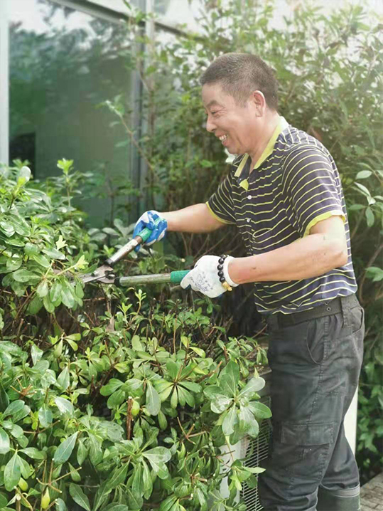 經(jīng)過了一個夏天的澆灌,所有的花草樹木都長得雜亂無章,沒有了美感和整齊性。早上9點鐘,由保安人員史留生、江榮海、高配的萬獻(xiàn)文、電工賀俊一共四人就組成了綠化小分隊,沒有電動工具,就戴上棉質(zhì)手套,拿上大剪刀。井井有條地進(jìn)行修花修草工程。江榮海和史留生負(fù)責(zé)修剪,賀俊和萬獻(xiàn)文負(fù)責(zé)清理。經(jīng)過兩個多小時的奮戰(zhàn),幾條綠化帶變得整齊而靚麗。公路處的領(lǐng)導(dǎo)看見后都給他們豎起了大拇指,連聲說:辛苦了!看著修剪后的花草樹木,真讓人心情舒暢。事情雖微不足道,但卻代表著我們高正人的精神,愛國愛家愛工作。