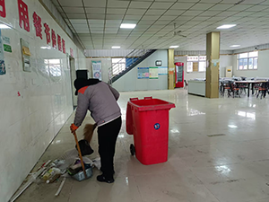 清潔工作正式啟動,保潔人員分工明確,配合默契。負責地面清潔的人員,先將食堂內桌椅小心挪至角落,隨后手持掃帚,認真清掃地面堆積的灰塵、食物殘渣與污漬,不放過任何一處縫隙與邊角。清掃完畢,便用濕拖把蘸取調配好的清潔劑溶液,反復擦拭,遇到頑固油污,或用清潔鏟鏟除,或噴灑特制除油劑后用力擦拭,直至地面光亮可鑒。清潔墻面的人員,借助長柄清潔刷,從天花板與墻面交界處開始,自上而下均勻涂抹清潔劑,仔細刷洗油污、積灰與廣告殘留,對于高處污漬,借助梯子小心攀爬清理。清潔門窗的人員,先用濕布去除灰塵,再用專用玻璃清潔劑搭配報紙細致擦拭,讓門窗通透潔凈。在廚房區域,保潔人員針對灶臺、廚具,使用鋼絲球和強力除垢劑,對灶臺表面油污、燒焦痕跡仔細除垢,廚具逐一拆卸清洗并高溫消毒。經過數小時不懈努力,食堂面貌煥然一新,地面干凈整潔,墻面潔白如新,門窗明亮通透,廚房設備一塵不染,為科二食堂重新開放提供了堅實的環境保障,充分展現了物業保潔團隊的高效執行力與專業素養,也體現了物業對甲方需求的積極響應,為后續食堂順利運營筑牢了基礎。