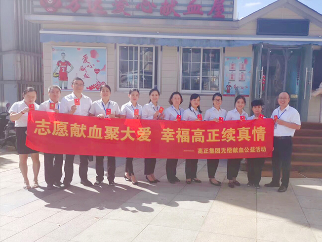 無償獻(xiàn)血是一項(xiàng)普通而偉大的公益事業(yè),是愛心奉獻(xiàn)的體現(xiàn)。江蘇高正集團(tuán)感恩社會(huì)各界的支持,一直堅(jiān)持履行社會(huì)責(zé)任,盡己所能回饋社會(huì),從高層領(lǐng)導(dǎo)到基層員工,多年來均堅(jiān)持定期無償獻(xiàn)血。