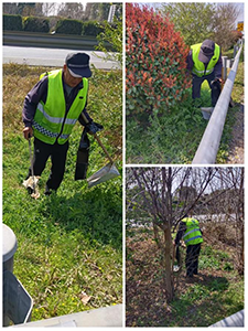 不過,有這樣一群默默奉獻的人,讓這片區域始終保持著應有的整潔。外場保潔員們,每日完成日常清掃工作后,便會拿起垃圾鉗,開始對整個綠化帶進行細致的巡檢。他們就像一群守護綠色的衛士,目光敏銳地搜尋著每一處垃圾。在他們的專注與努力下,那些白色垃圾如同隱匿在草叢中的“小怪獸”,逐一被清理干凈。每一次垃圾鉗的起落,都承載著他們對服務區環境的守護;每一次彎腰撿起垃圾的動作,都彰顯著他們對這份工作的執著與熱愛。正是他們的辛勤付出,讓常高速淹城服務區始終以整潔的面容迎接南來北往的旅人 。