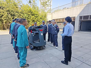 理論講解之后,進入實操環節。專項機器老師傅親自示范,逐步展示了如何正確啟動、操作這兩類洗地機,詳細說明了在不同地面材質和清潔場景下的調節操作技巧,以及如何應對常見故障和小故障排查處理。員工們分組進行實踐操作,大家踴躍提問,積極交流,對洗地機的操作逐漸熟練起來。