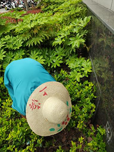 他們手持垃圾袋,穿梭于花壇之間,仔細搜尋每一個煙頭、每一片紙屑。哪怕是藏在花叢深處的垃圾,也逃不過他們敏銳的目光。遇到難以撿起的垃圾,保潔員們就蹲下身子,用手一點點摳出。