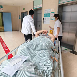 當清晨的第一縷陽光透過窗戶,照進了繁忙的醫院大廳。一站式的客服接到6樓內分泌科護士長的電話,說有一位特殊病人,因為體型比較胖(300斤左右)加上行動不便,運送來的兩位阿姨推不動,需要一位男士來幫忙,這時身為儲備的梁濤聽到,第一時間來到6樓病人汪大哥身邊,把汪大哥從住院部推到門診做檢查,因為肥胖加上腿行動不便,汪大哥情緒非常的焦慮與不安。梁濤主動上前與汪大哥搭話,不僅耐心地向他解釋了檢查的整個流程,還用自己的親身經歷安慰她,在梁濤的陪伴下汪大哥緊張的情緒逐漸得到緩解,整個過程變得不再那么害怕與焦慮。