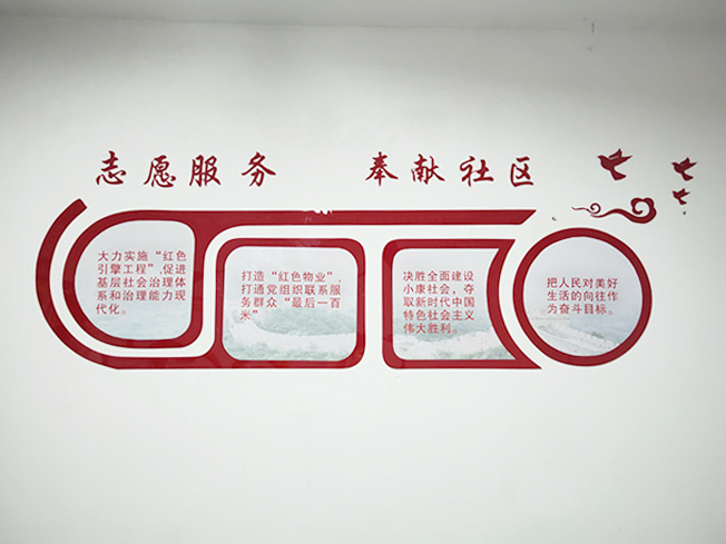 9月份是收獲的季節,也是我們物業人忙碌的季節。紅色物業對我們來說是陌生的,我們都是帶著學習的態度在認識這個新事物,認真對待關于紅色物業我們要完成的工作。首先我們的工作環境開始有了新的變化,物業管理部的接待處,經理的辦公室等,墻面加入了紅色元素,以前的單調的白墻,現在都是一些讓人看得熱血沸騰的口號,諸如:不忘初心,牢記使命;黨在我心中,永遠跟黨走……等等這些鼓舞人心的話語,另外在小區的重要出入口都掛了我們祖國的五星紅旗。看著煥然一新的工作環境,我們工作的激情也像這隨處可見的紅色一樣非常強烈。