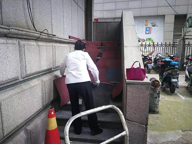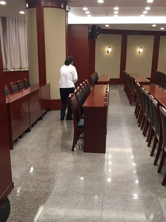 投資廣場是一個已經有20幾年的大廈了,因大廈的員工所有的開會和活動都是在4樓的會議室。為了更好的為業主服務,提高服務質量,提升大廈的形象。投資廣場項目部把會議室的地毯一塊一塊拿出進行清洗晾曬,在不影響大廈業主出行的情況下,項目部的保潔工作人員利用手推車把地毯從4樓運至大廈廣場東面一座廢棄的充電房旁進行晾曬。為了更好的充分的晾曬,每天項目部保潔人員會對地毯進行翻面。并且項目部每天還對4樓會議室進行徹底的打掃。保潔人員對每一張桌子,每一張椅子都反復擦洗。對地面一遍又一遍清理。項目部還出資買來水管對會議室外部邊緣進行清洗。項目部的做法得到了大廈業主的一致好評,每當有員工開會,一走進會議室看見明亮又干凈整潔的環境,都紛紛豎起大拇指,連連稱贊。由于業主的肯定,項目部也是由衷的感到高興。