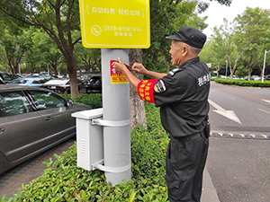 上午9時,安保員攜帶專業工具深入停車場區域。燈桿上密布的二維碼貼紙層層交疊,車充電樁的廣告膠痕頑固粘連,部分區域甚至覆蓋了綠化提示標識。團隊采取人工鏟除與藥劑清理結合的方式,先以巧勁剝離表層貼紙,再對殘留膠痕精準噴涂溶解劑,確保清除不留痕。