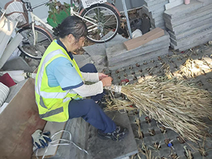 顧美大在日常工作中發(fā)現(xiàn),隨著高鐵北站客流量的增加,清掃面積不斷擴(kuò)大,掃把的使用頻率和損耗率也隨之升高。頻繁采購新掃把不僅增加成本,也不符合綠色環(huán)保的理念。于是,她萌生了自制掃把的想法。