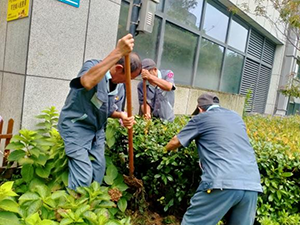 今日清晨6點多就看見幾位師傅已揮起鐵鍬,一場特殊的“綠植遷徙”正悄然展開。因墻體下側需要施工,要在此處開出一米寬的空間施工,擋住的綠化帶需臨時遷移,為兼顧工程進度與植被保護,師傅們將這些綠植移栽至西邊停車場后側的綠化帶。