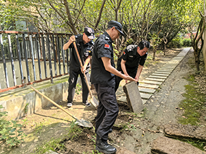 整個(gè)換管過程中,保安團(tuán)隊(duì)始終堅(jiān)守現(xiàn)場(chǎng),協(xié)助維護(hù)秩序、清理施工廢料,雙方默契配合。經(jīng)過近 3 小時(shí)的緊張搶修,新管道安裝調(diào)試完成,對(duì)塌陷區(qū)域進(jìn)行泥土回填、平整地面,并清理干凈現(xiàn)場(chǎng)雜物。