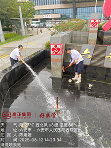 清理前,外圍主管對噴泉水池進行了詳細勘察,發(fā)現(xiàn)池底沉積了大量淤泥、落葉及微生物污垢,部分噴頭因水垢堵塞導(dǎo)致水花效果不佳。工作人員首先排空池水,利用高壓水槍沖洗池壁,隨后用鏟子、地板刷等工具清除池底頑固淤泥和雜物,確保無死角。