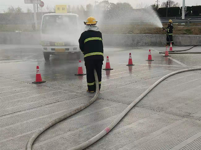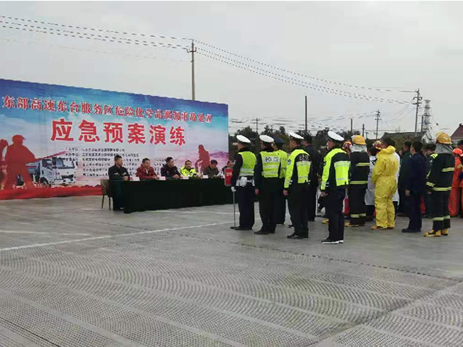 為積極貫徹江蘇省交通控股公司開展高速服務區“應急預案演練月”活動的相關要求,進一步規范服務區應急預案管理體系,提升服務區對突發事件應急處置能力,11月26日,東臺服務區聯合鹽通管理處、派出所、交警、路政、消防隊、高速清障隊、東臺人民醫院及服務區各承租方等單位在東臺服務區共同舉辦了“危險化學品泄露事故應急預案演練活動”。東部高速副總經理吳海翔、各部門管理處相關負責人以及東部高速全線各服務區管理人員、各物業公司負責人、全線物業公司部分保安參加了觀摩。
