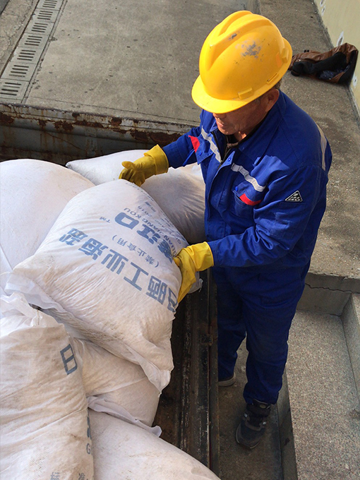 不過,除雪最有效的工具卻是鹽,并不是吃的鹽,是工業海鹽。雖說有許多的除雪工具,許多的人力,但這些去除結在路面上冰效果就不理想了。因此,便需要工業海鹽來做除冰雪劑,其主要原理是利用融雪作用的物質來降低水分的結冰溫度,在降雪過程中融化新雪,防止結冰。為此,我們將分布在科三區域的鹽運了部分至科二,以防下雪后路面出現結冰的情況。